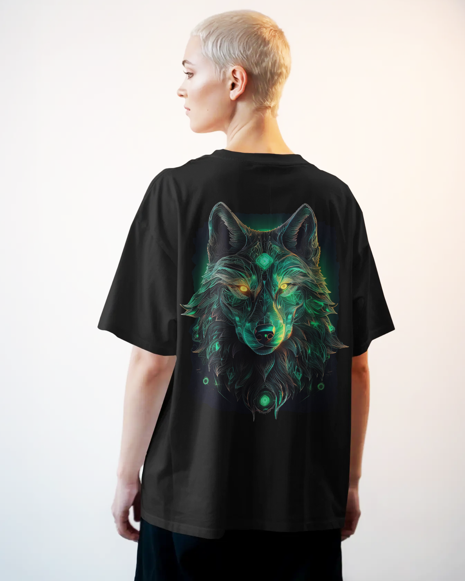 Let your inner wild glow. The Code Fury black oversized t-shirt by Alt Art features a mystic, cyber-glow wolf designed to turn chaos into confidence. Built for women who love streetwear fashion with a fierce edge, this tee blends power, art, and bold attitude. Whether you're styling it up with boots or keeping it casual, this oversized fit makes a strong statement every time.
