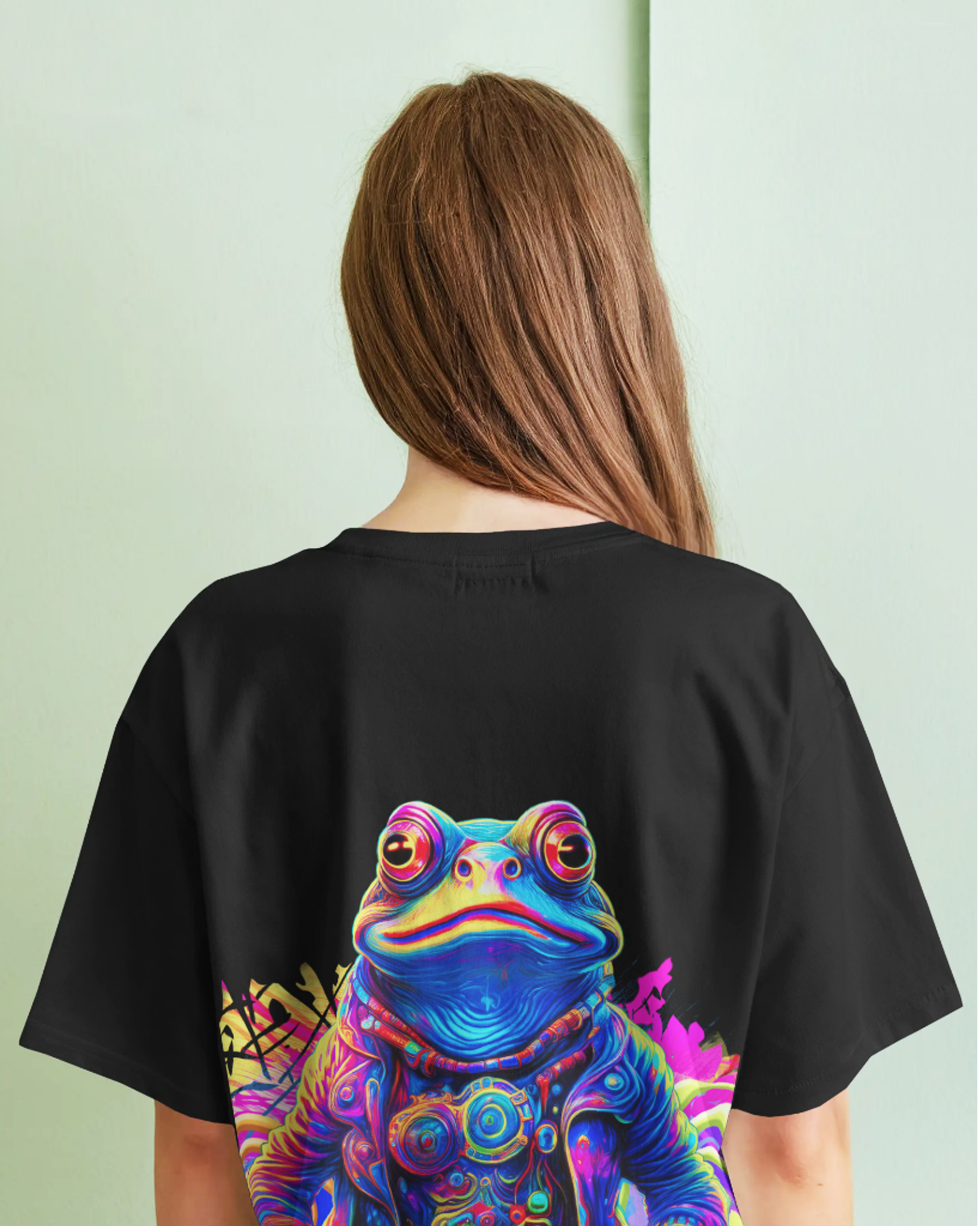 DJ Frog Oversized Black T-Shirt for Women & Girls – Funky Frog Music Graphic Tee
