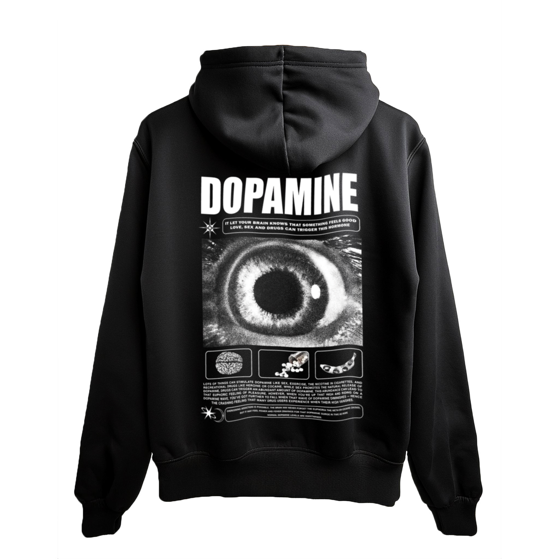 Boost your vibe with the Dopamine Graphic Hoodie for Men by Alt Art.