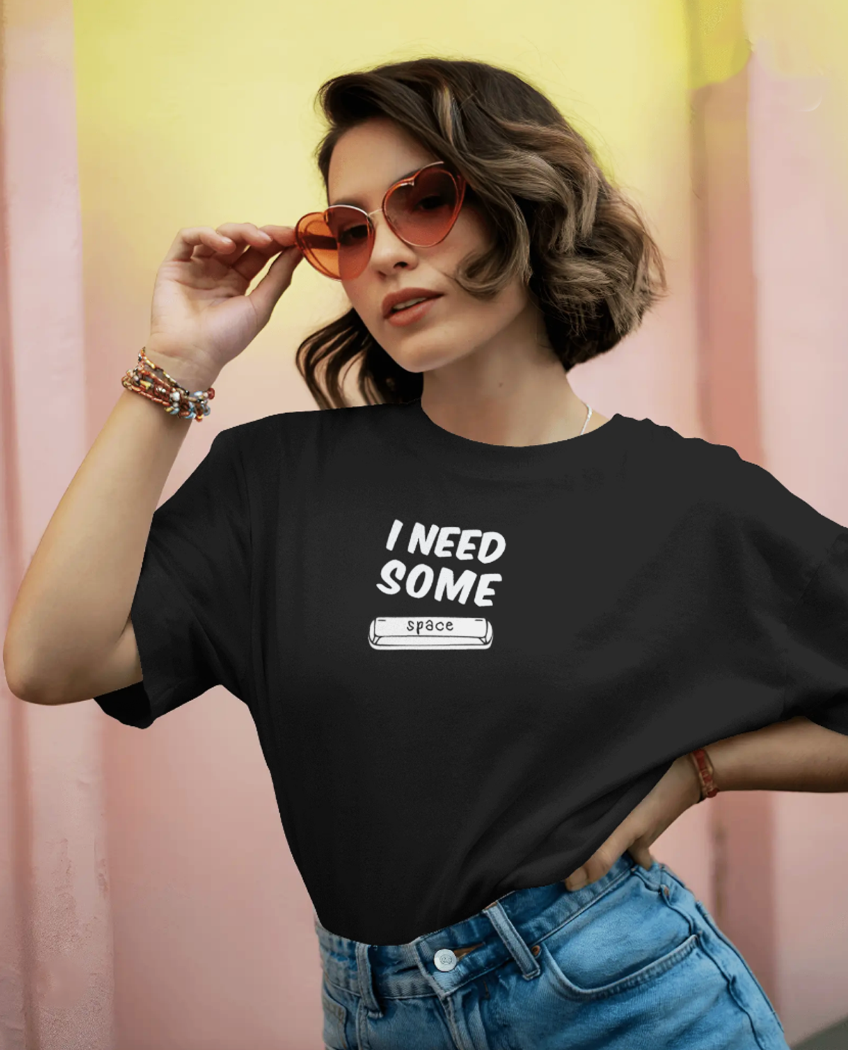 Black oversized t-shirt with “I Need Some Space” graphic print