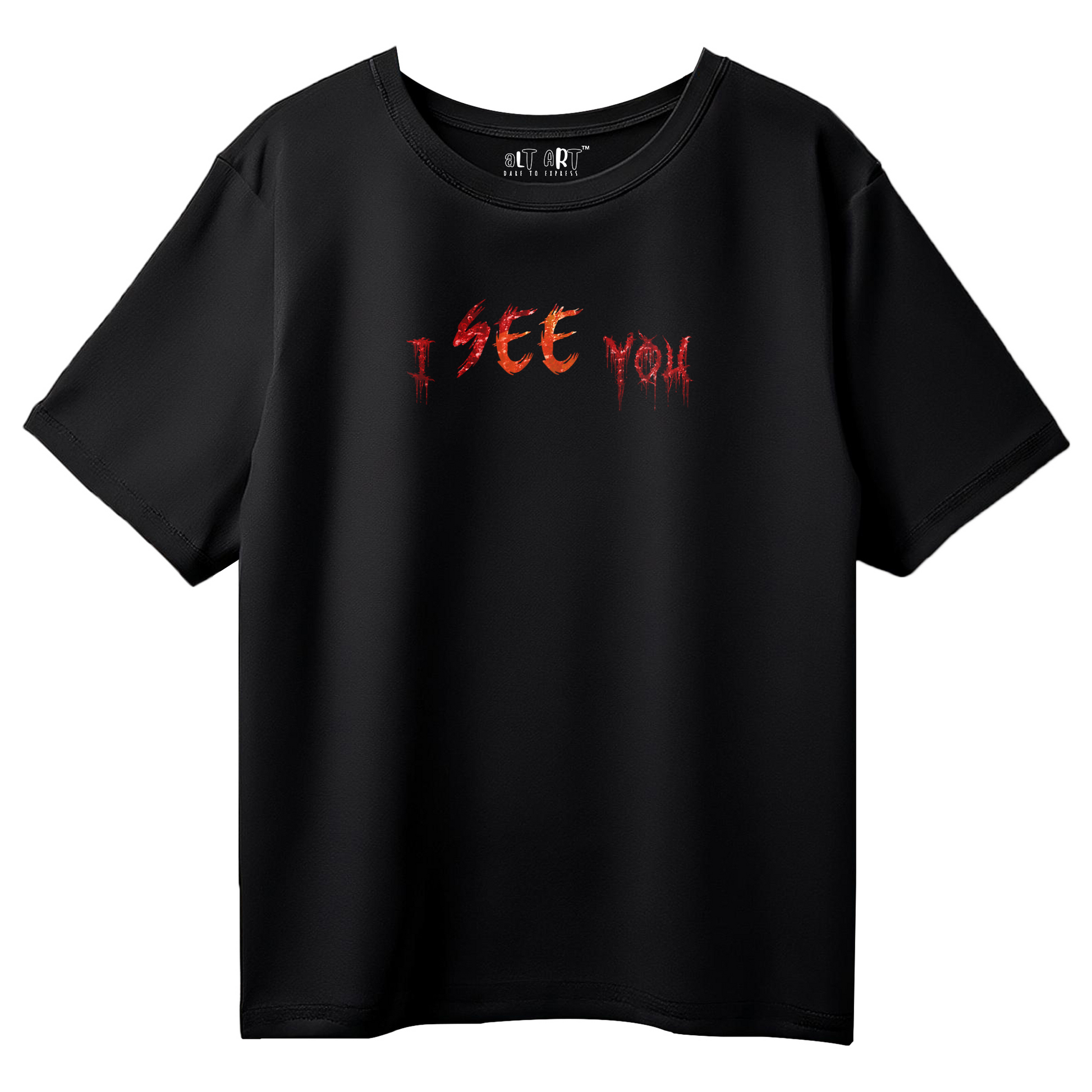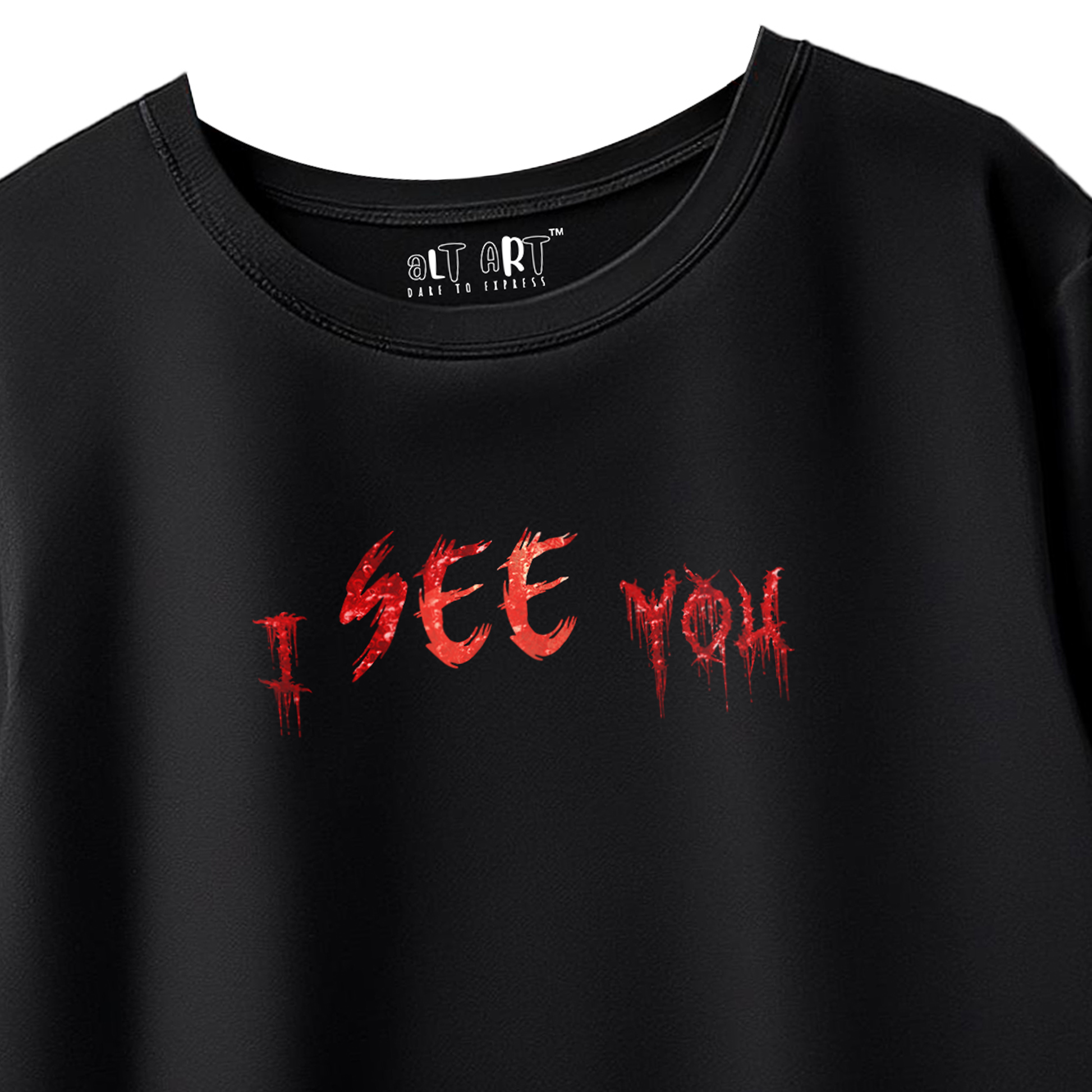 I See You Oversized T-Shirt for Women & Girls - Horror Graphic Tee | Spooky Streetwear