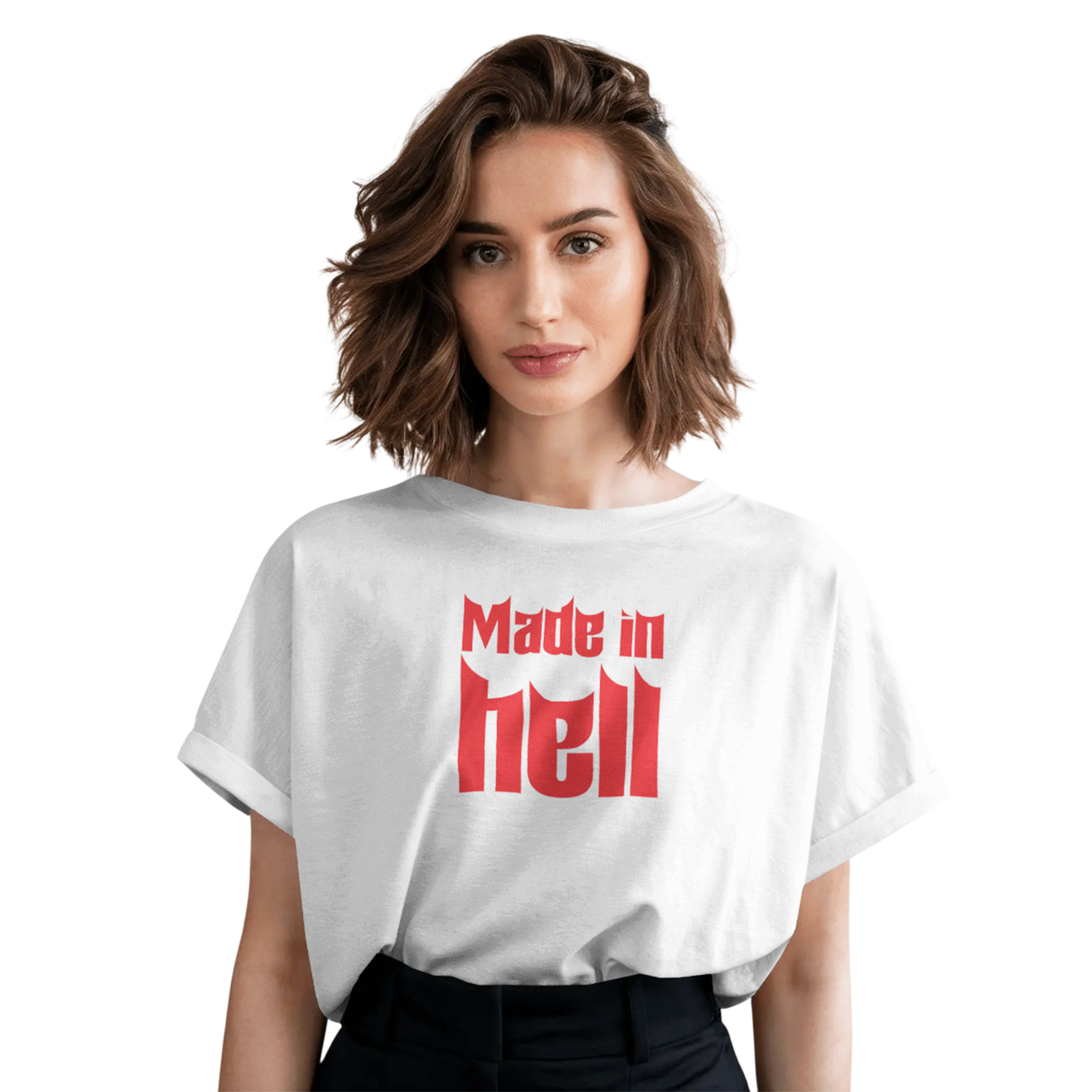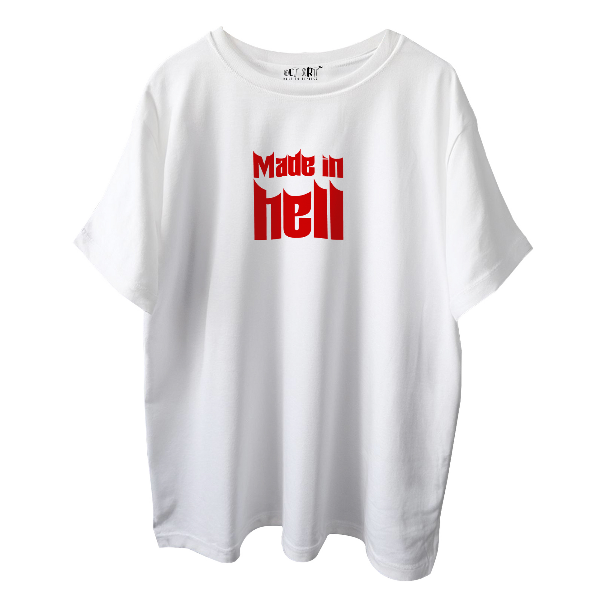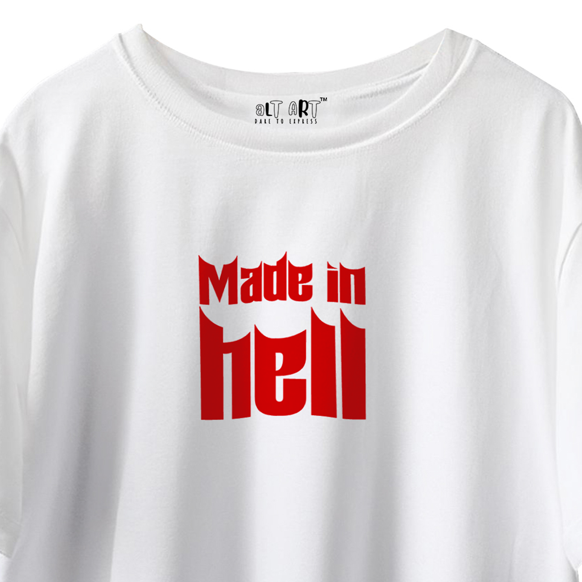 Made in Hell White Oversized T-Shirt for Women & Girls | Gothic Graphic Streetwear Tee