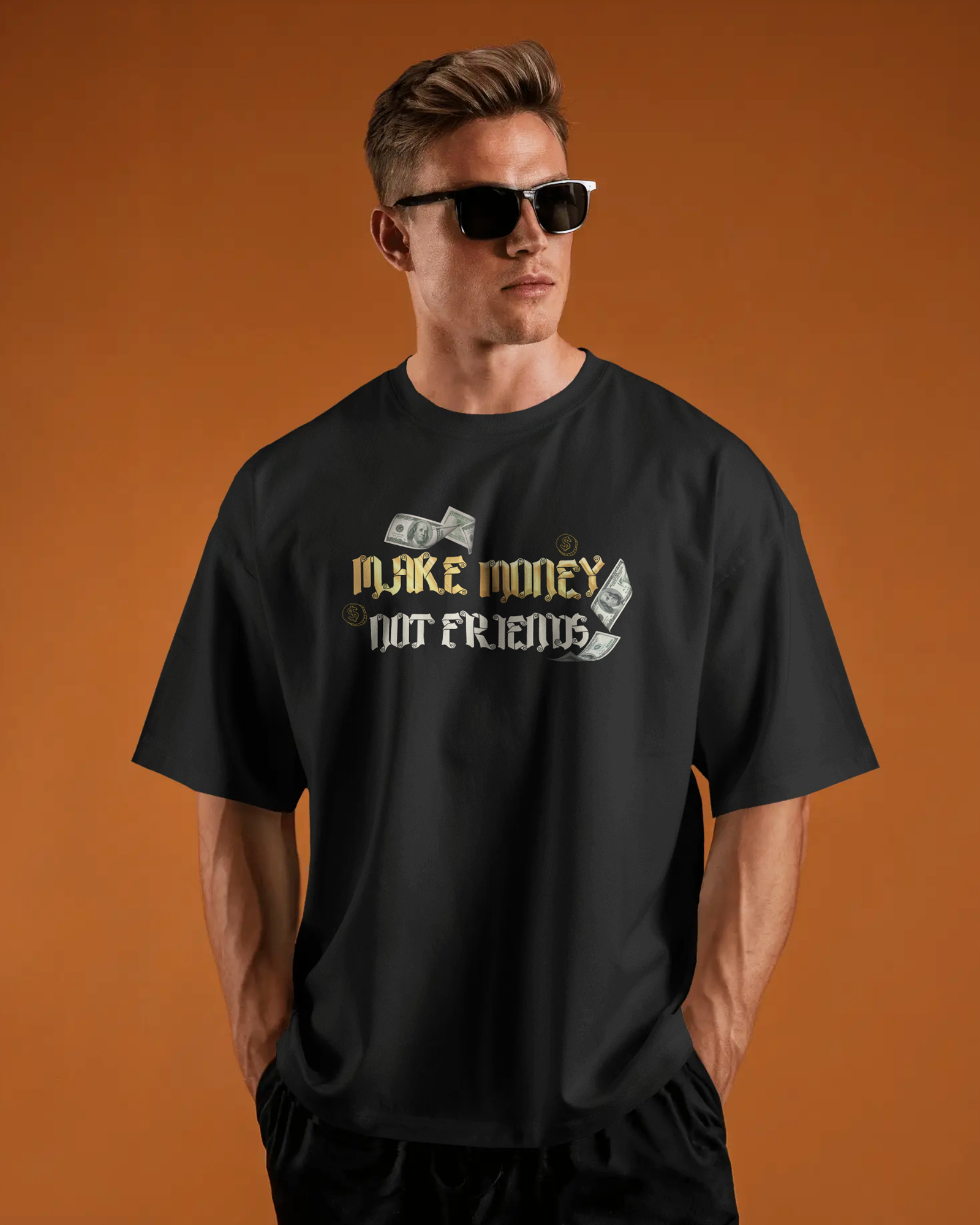 Make Money Not Friends – Black Oversized Graphic T-Shirt for Men & Boys