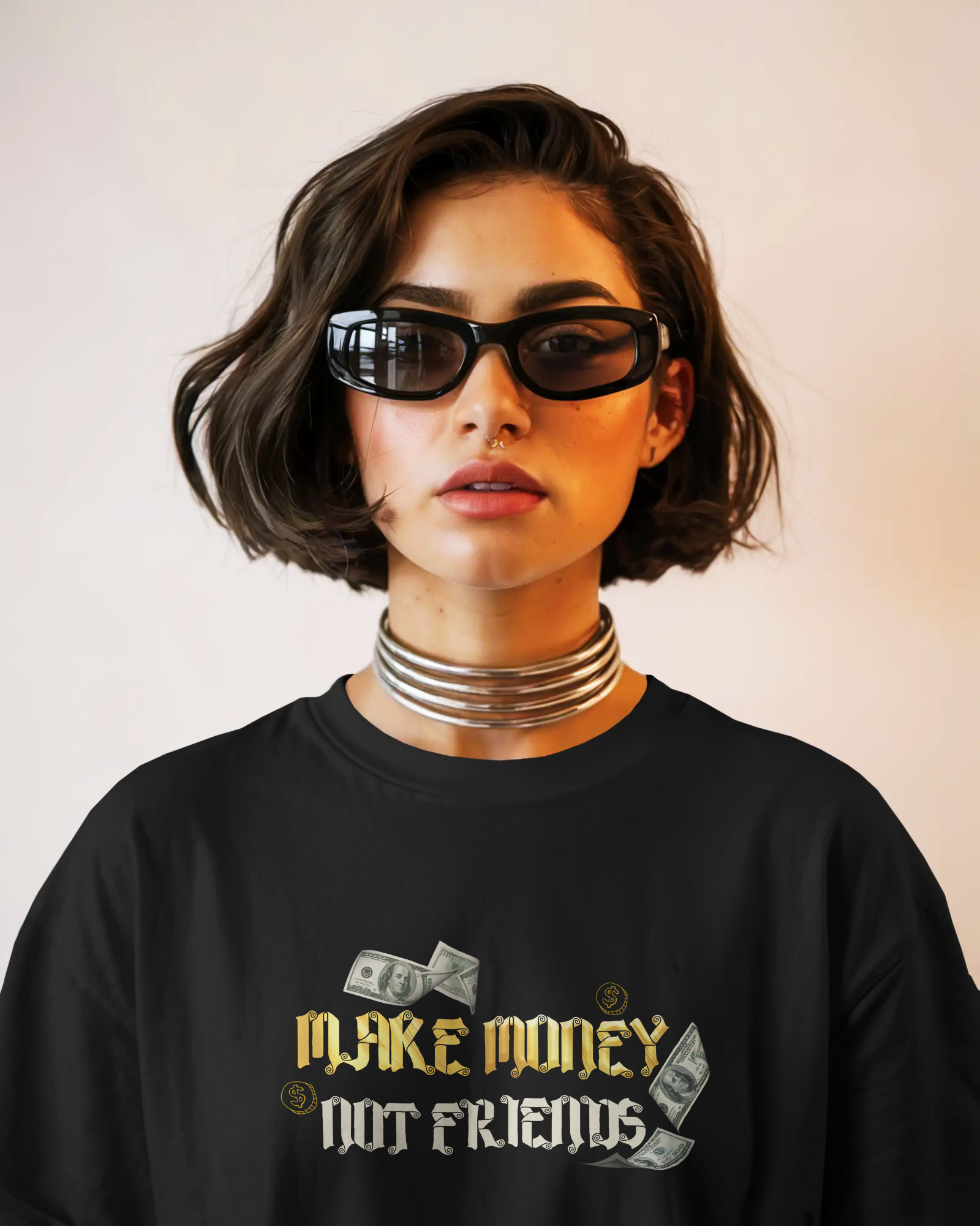 Make Money Not Friends – Black Oversized Graphic T-Shirt for Women & Girls Boss Babe Streetwear Tee