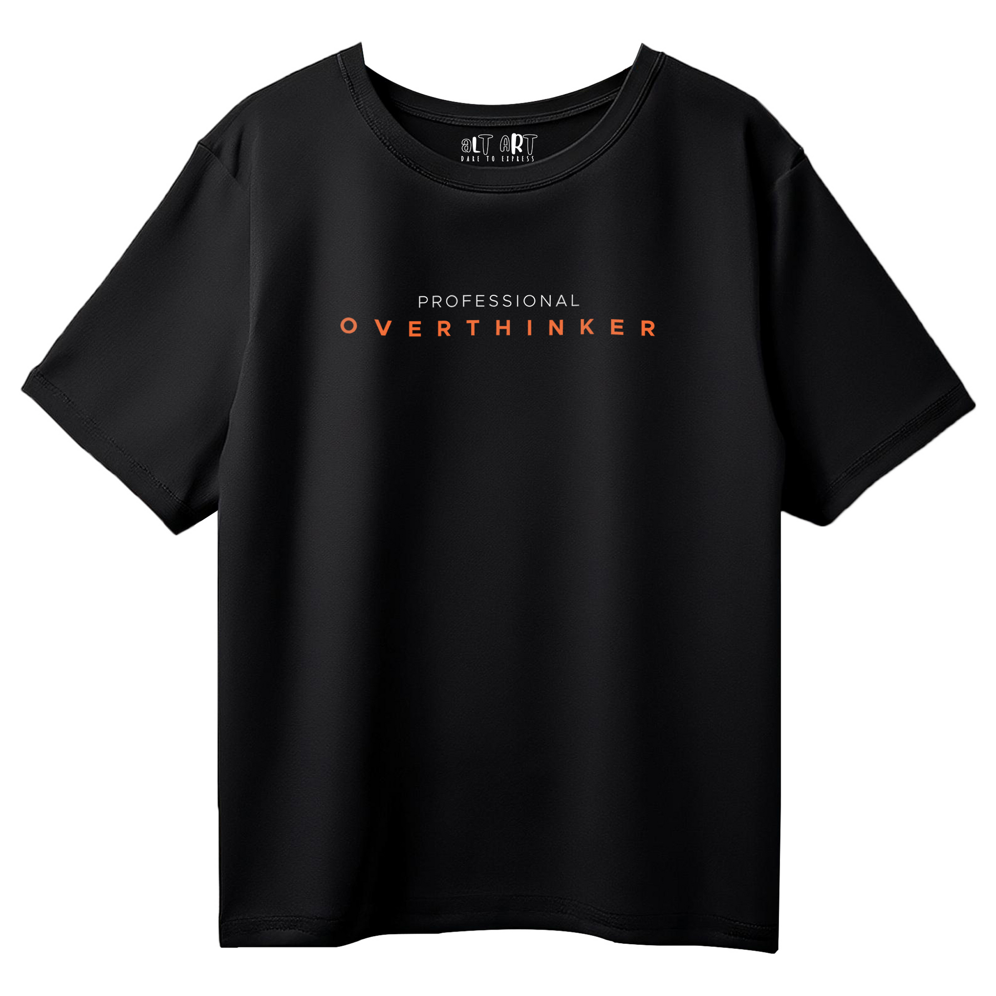Overthinking everything since forever? The Professional Overthinker oversized t-shirt for men is the perfect way to embrace your deep (and endless) thoughts in style. With a minimalist yet bold design, this black oversized tee is a statement piece for every overthinker, featuring premium cotton for all-day comfort and a relaxed fit that lets you stress in peace.