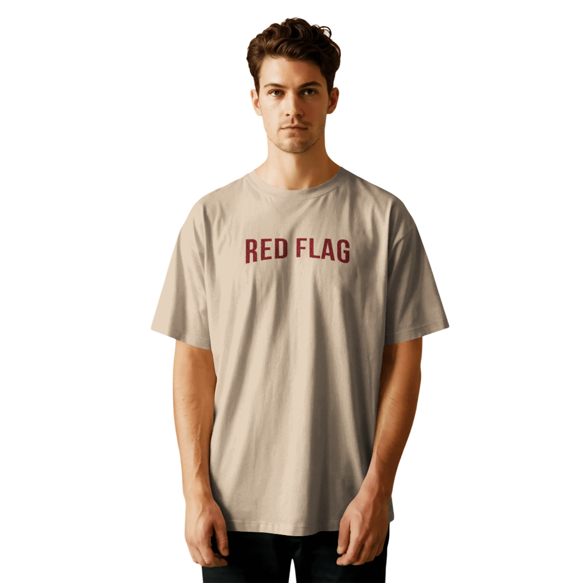 Red Flag Beige Oversized T-Shirt for Men | Funny Quote Streetwear Tee