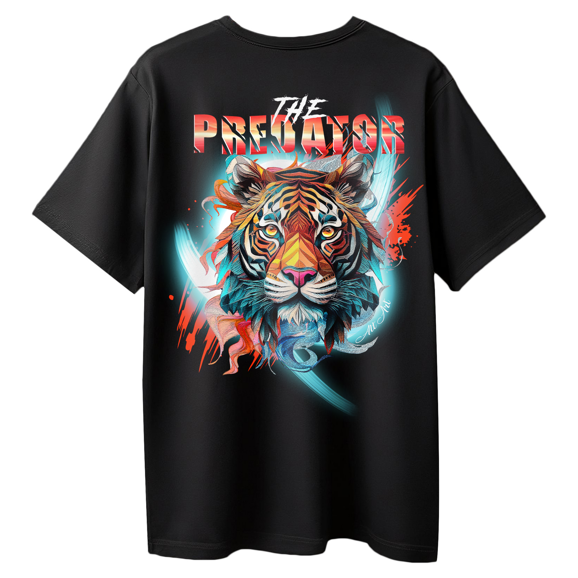 Unleash your wild side with The Predator Oversized T-Shirt for Men, a tribute to raw power, dominance, and untamed energy. Featuring the fierce gaze of the tiger alongside the bold text "The Predator", this Alt Art exclusive is designed for men who exude confidence and strength.