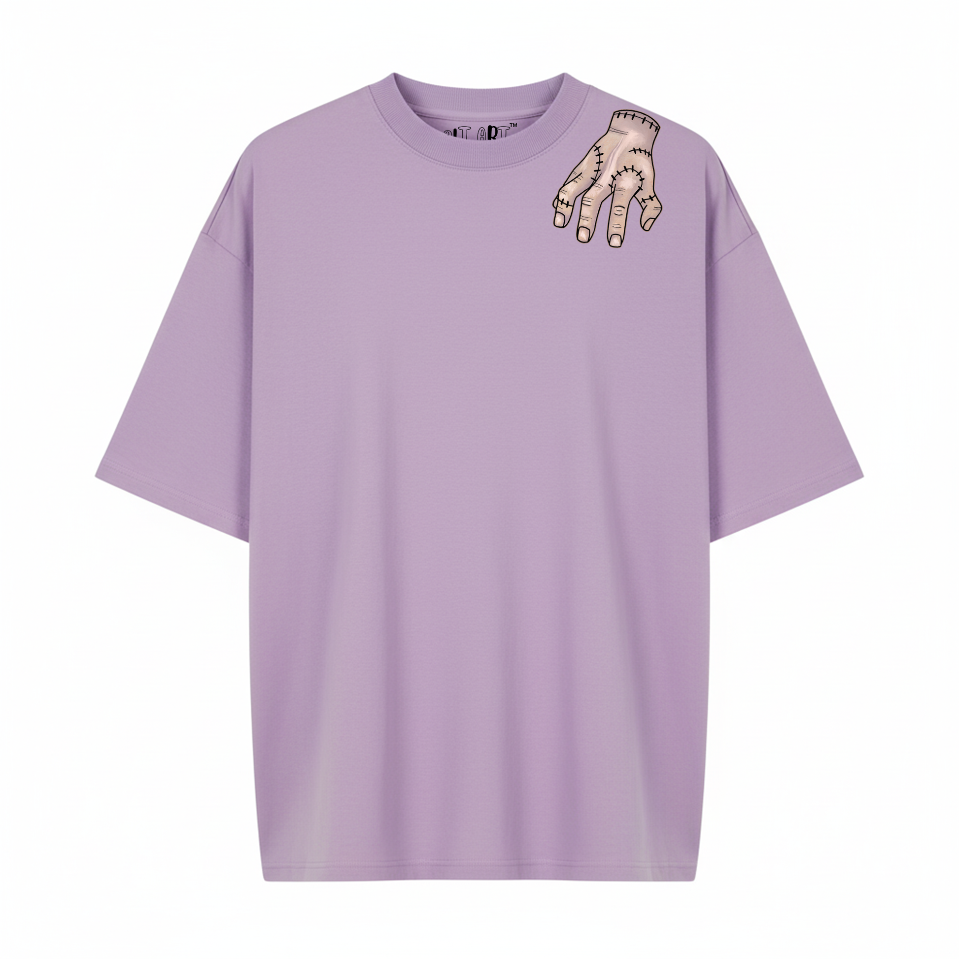 Embrace your inner dark queen with the Alt Art Wednesday Lavender Oversized T-Shirt for Women, inspired by the mysterious world of Wednesday Addams and her iconic Addams Hand. This gothic oversized t-shirt blends soft pastel aesthetics with moody undertones, making it a perfect fit for those who live for art, attitude, and edge.